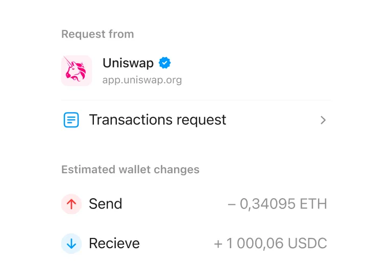 承認する前に、その取引で何が行われるのかを正確に確認できます。暗号資産を誤った宛先に送らないよう、安全チェックも組み込まれています。